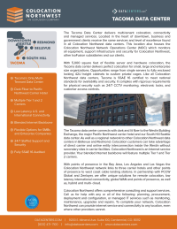 Colocation Northwest's Tacoma Data Center delivers exceptional multi-tenant colocation, connectivity, and managed services from downtown Tacoma, WA. Featuring 5000 sq ft of flexible server and hardware colocation space, this facility is equipped with SSAE 16 certification, advanced security, and direct carrier interconnections, ensuring optimal performance and reliability for businesses of all sizes.